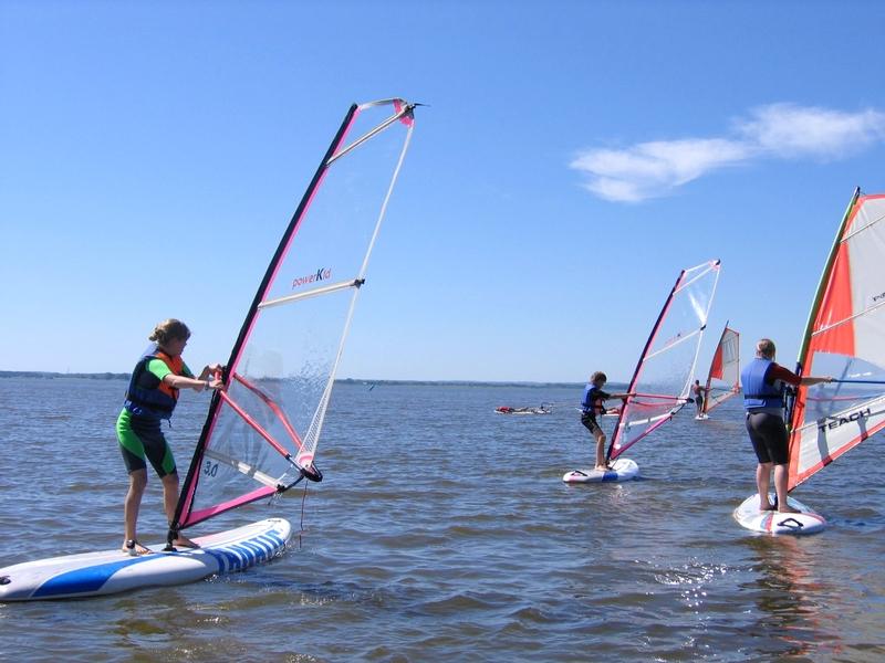 WINDSURFING – dodatkowe 4 h szkolenia obejmujące zasady bezpieczeństwa budowa sprzętu i podstawy teorii żeglowania, ćwiczenia równoważne na wodzie, podnoszenie żagla z wody i jazda na halsie, doskonalenie jazdy na halsie oraz obroty deską pod wiatr i z wiatrem, doskonalenie poznanych elementów oraz nauka ostrzenia i odpadania, doskonalenie jazdy na halsie oraz nauka zwrotu przez ostrzenie - „na wiatr”.