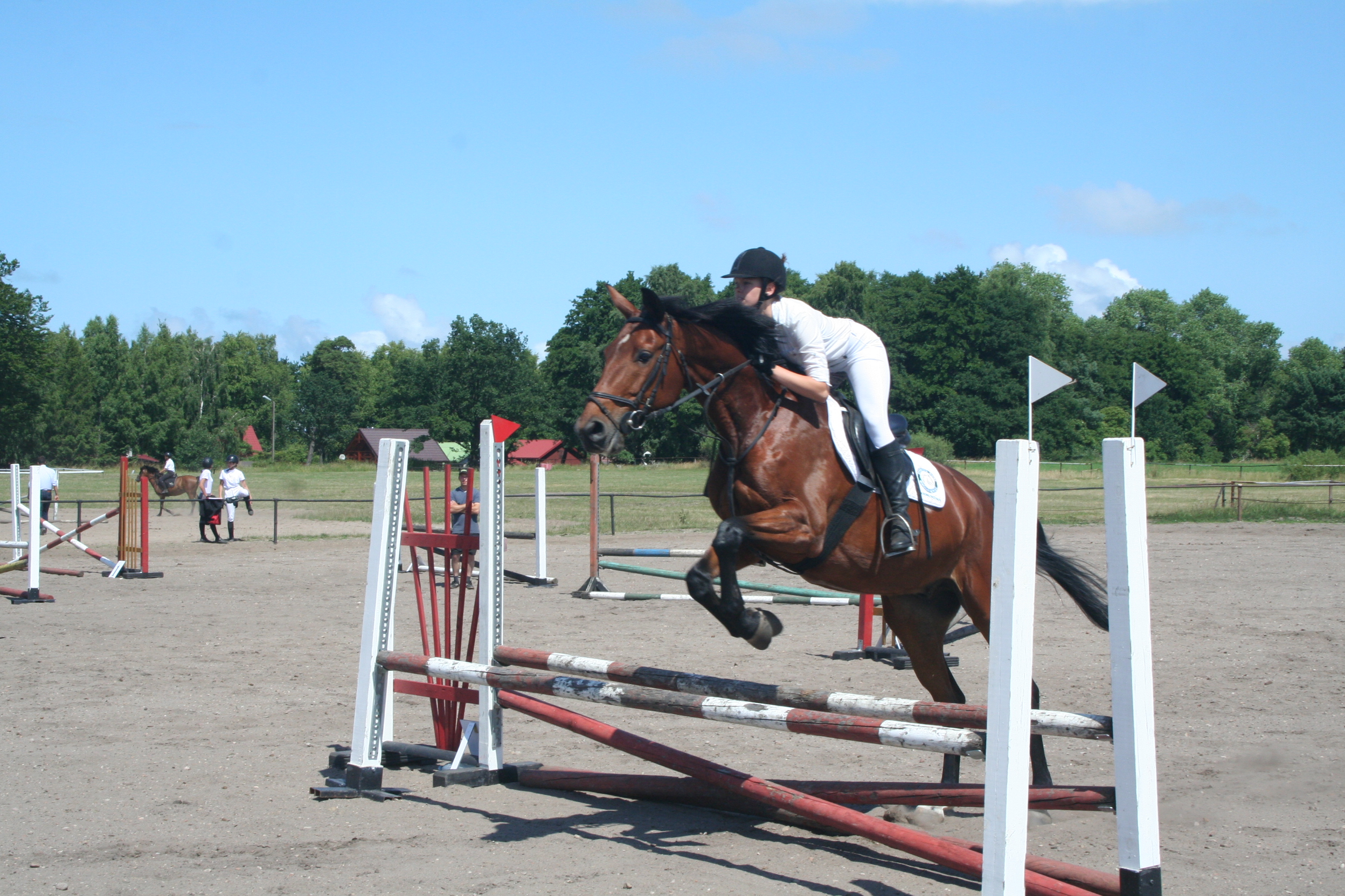 Grupa szkoleniowo-sportowa (+200zł płatne na miejscu) – warunkiem uczestnictwa w tej grupie jest umiejętność poprawnego galopu i podstaw w skokach, co jest sprawdzane w pierwszym dniu przez trenera. W przypadku akceptacji trenera na przesunięcie do tej grupy, należy uiścić na miejscu dodatkowy koszt w wysokości 200 zł. Grupa jest przygotowywana do zdania egzaminu Polskiego Związku Jeździeckiego na odznakę brązową lub srebrną. Egzamin komisyjny jest przeprowadzany na terenie Ośrodka „Senny” po zdaniu egzaminu wewnętrznego: