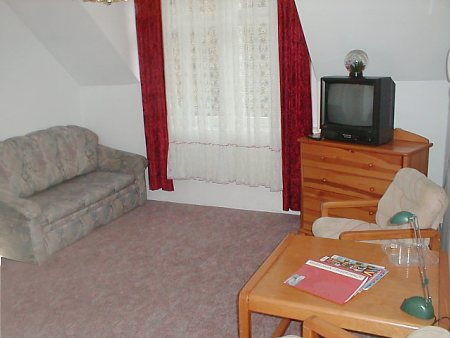 Pensjonat o wysokim standardzie, położony w centrum Szklarskiej Poręby. Posiada pokoje 2,3,4-osobowe z łazienkami lub z łazienką na dwa pokoje, każdy z TV i telefonem. Do dyspozycji uczestników: stołówka, świetlica z TV i piłkarzykami, stołem do tenisa, sala dyskotekowa, narciarnia, wypożyczalnia sprzętu, bilard dodatkowo płatny. W odległości ok. 500 metrów kryty basen, w odległości ok. 600 metrów – dolna stacja na Szrenicę, do najbliższego wyciągu ok. 150 metrów.