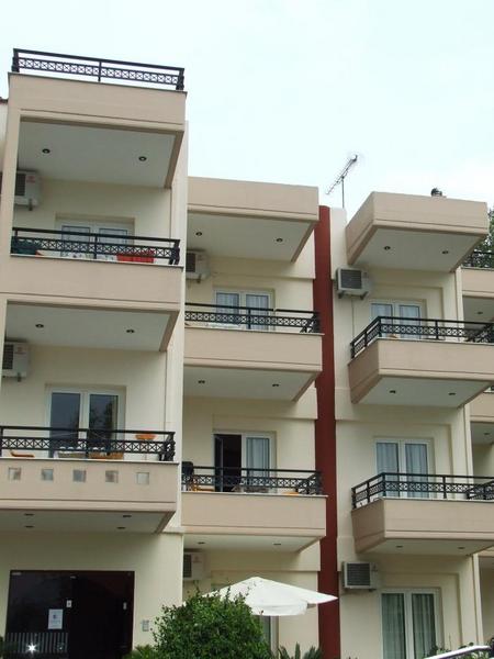 Apartamenty – pokoje 3,4 osobowe z pełnym węzłem sanitarnym, balkonem, tv. Obiekty położone są ok. 150 m od piaszczystej plaży. Posiadają pokoje typu studio jednopokojowe dla 3 -4 osób z łazienką lub składające się z 2 pokoi 3, 4 os + łazienka. Wszystkie wyposażone w aneks kuchenny i balkon. Wyposażone standardowo: szafa, łóżka, pościel, poduszki, koce, stolik, krzesła, tv. Należy zabrać ze sobą ręczniki, środki czystości i środki do higieny osobistej. Klimatyzacja dodatkowo płatna: ok. 3-4 euro/dobę/pokój.